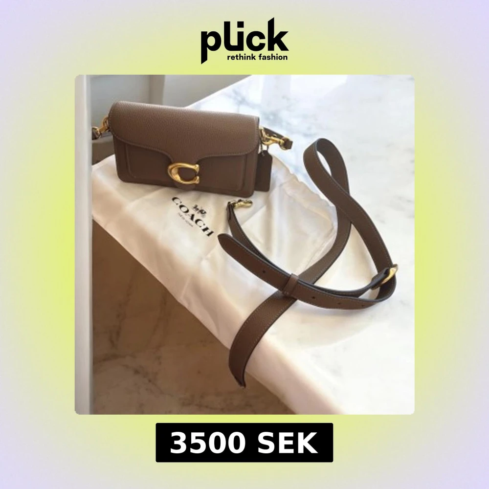 Snygg brun axelväska från Coach i äkta skinn med justerbar rem och guldfärgade metalldetaljer. Klassisk design med präglad logga och stort C-spänne framtill. Perfekt storlek för det viktigaste och stilren look.