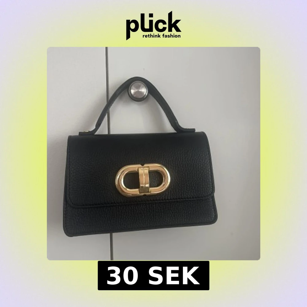 Stilren svart handväska i skinn med snygg guldfärgad spänndetalj framtill. Väskan har ett klassiskt handtag och ett rymligt fack med plats för det viktigaste. Perfekt accessoar för att lyfta din outfit.