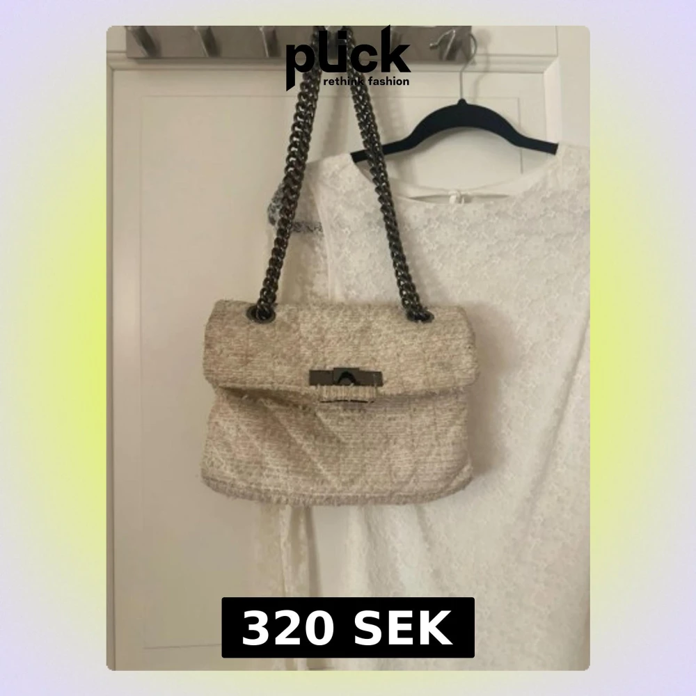 Vit väska i ”tyg” ifrån Kurt Geiger. Något missfärgad ifrån min svarta kappa, går kanske bort igenom att tvätta lite försiktigt. Tappat färg vid knäppet och kedjan på vissa partier. Hör av er vid frågor! 💕