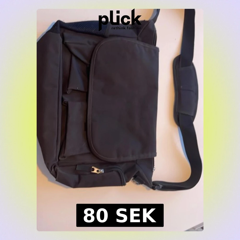 Säljer en stilren svart datorväska med bred axelrem och vadderad axelkudde för extra komfort. Väskan har flera praktiska fack, dragkedja och ett stort lock framtill. Perfekt för att bära laptop och tillbehör. Enkel och funktionell design.