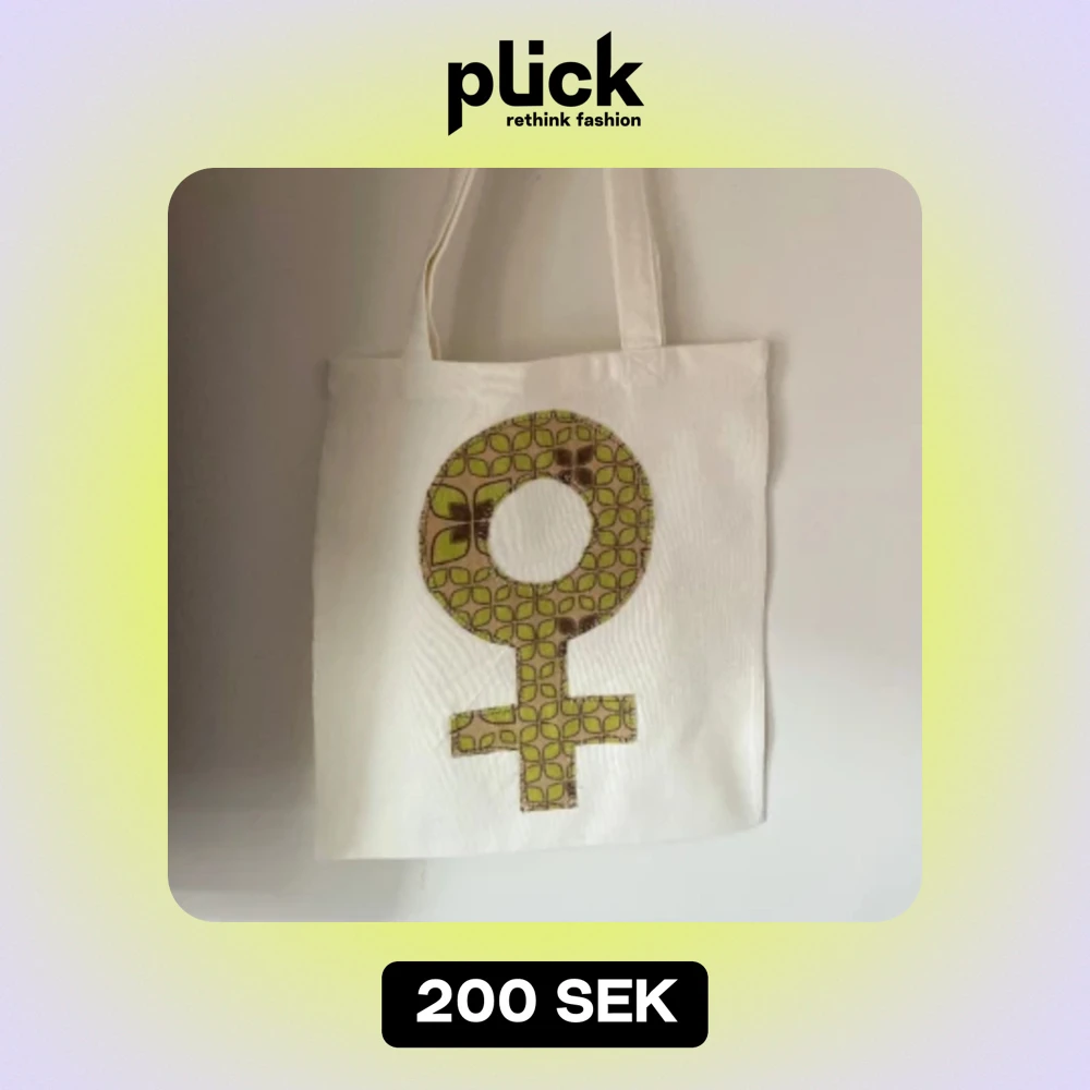Handsydd tygkasse med motivet ”feminist”. Tillverkad i 100% återvunna textilier. Mått: 32x35 cm Hämtas på Södermalm alternativt skickas med post.