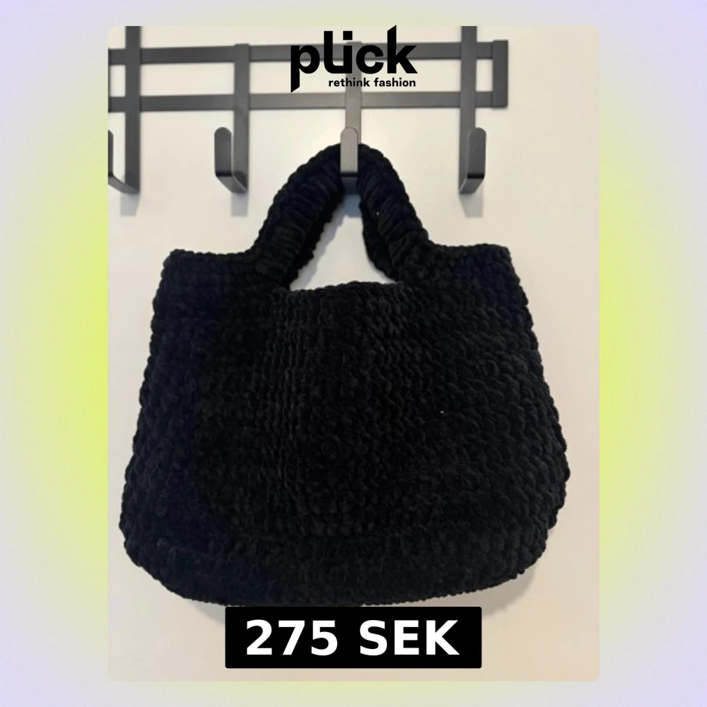 Säljer en svart handväska med mjuk och fluffig känsla i sammet. Väskan har rundad form, breda handtag och en stadig botten. Perfekt storlek för att få plats med allt du behöver så som en 15 tums laptop och ger en cool vibe till din outfit.