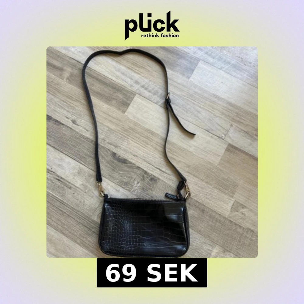 Snygg svart axelväska med croco-mönstrad yta och justerbar rem. Väskan har dragkedja upptill och stilrena metalldetaljer. Perfekt storlek för det viktigaste och ger en trendig touch till din outfit.