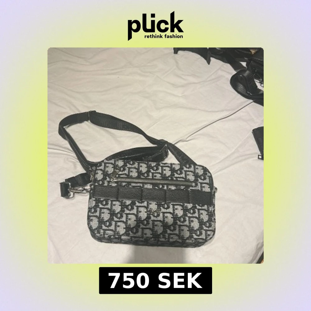 Snygg axelväska fmed svart och grått mönster, justerbar rem och praktisk dragkedja framtill. Väskan har en rektangulär form och är perfekt för att bära dina essentials.