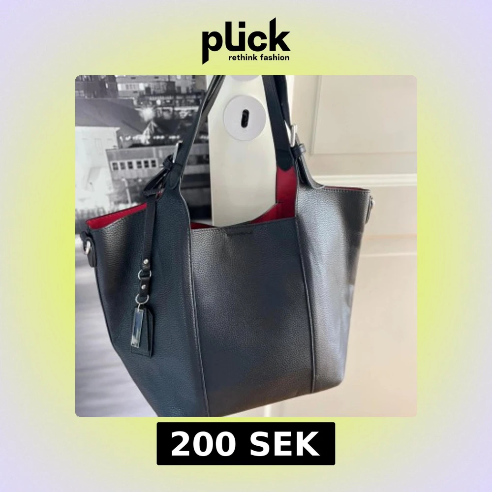 Svart axelväska med röd insida