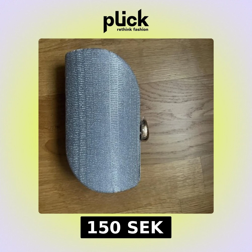 Oanvänd snygg silverfärgad kuvertväska med glittrig yta och rundade kanter. Väskan har ett metallspänne i guld och en tunn kedja som axelrem. Perfekt för att lyfta din outfit med lite extra bling. Insidan har ett svart foder och ett litet fack.