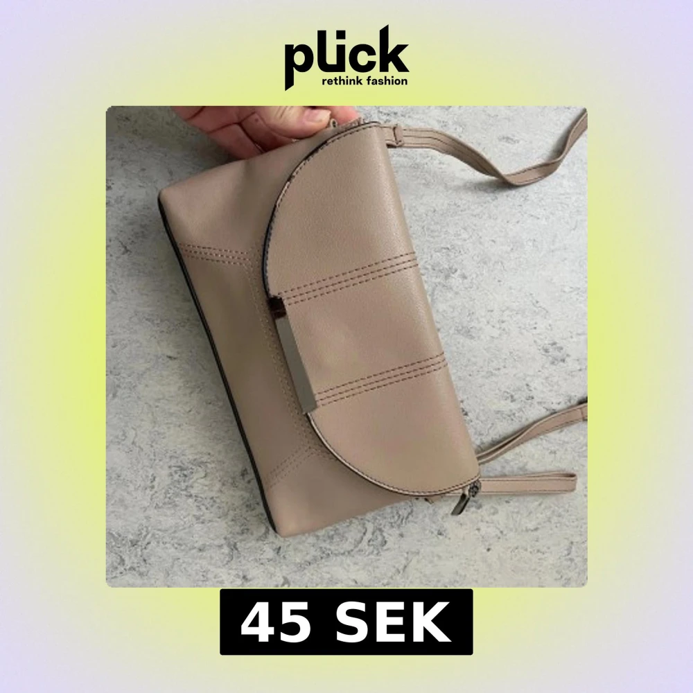 Stilren beige axelväska i skinnimitation med justerbar rem och silverfärgad metall-detalj på locket. Väskan har dragkedja både på baksidan och inuti, samt magnetlås framtill. Perfekt storlek för mobil, plånbok och småprylar.