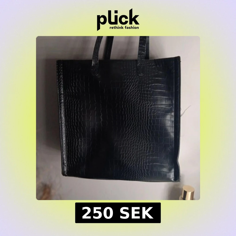 Stilren svart handväska i croco-mönstrat skinnimitation. Väskan har två rejäla handtag och rymligt innerfack med flera fack och dragkedja. Perfekt för dig som vill ha en edgy och klassisk look med plats för allt du behöver.