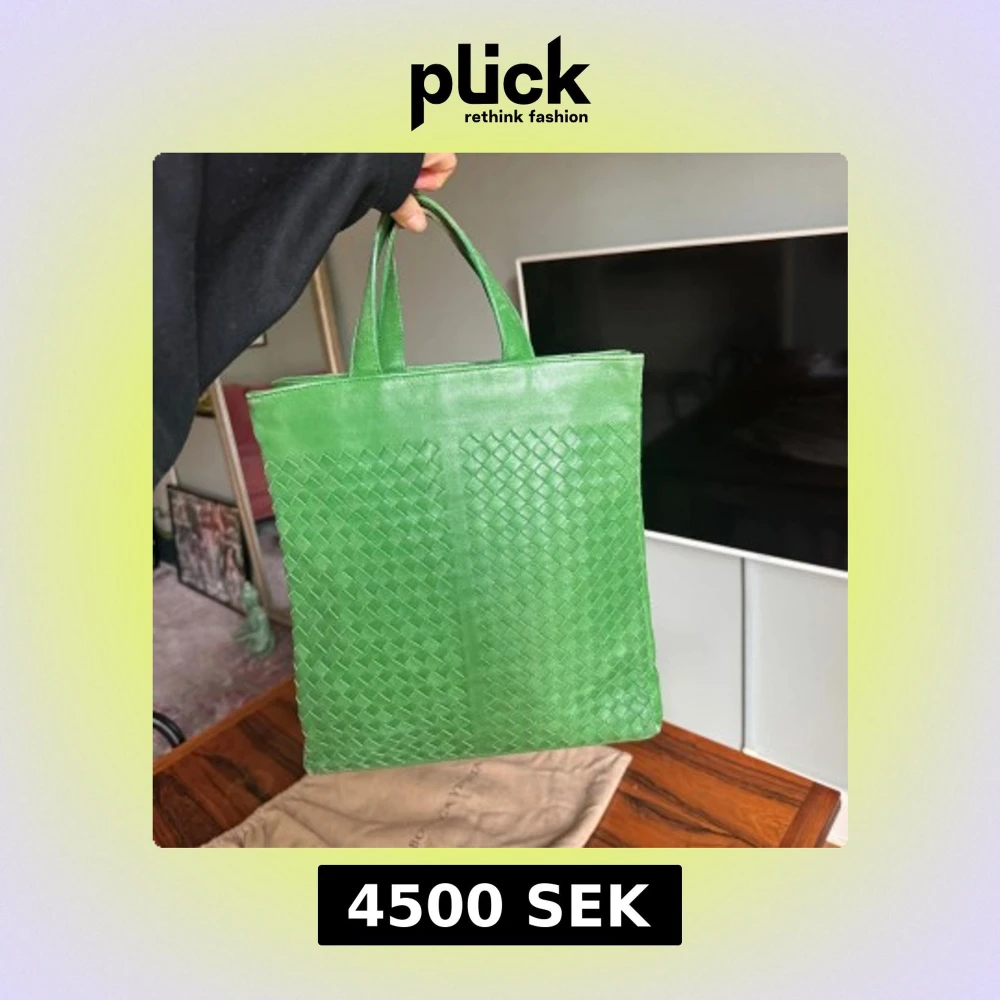 Snygg grön handväska från Bottega Veneta i äkta skinn med klassiskt flätat mönster. Väskan har två handtag och en stilren, fyrkantig form. Perfekt för dig som vill sticka ut med en färgstark accessoar.