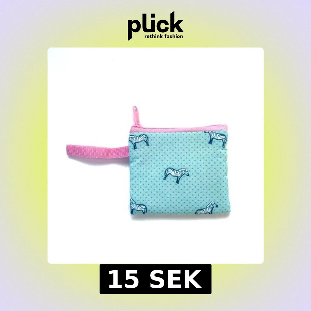 Söt liten ljusblå fodral med zebramönster och rosa dragkedja. Perfekt för att hålla ordning på småsaker. Den har en praktisk rem för enkel hantering. Mått 8,8x9,5cm. Villkor enligt profilbeskrivning.