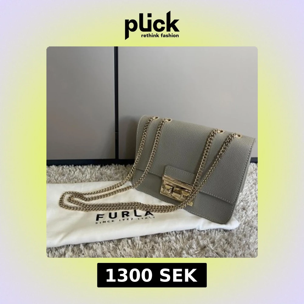 Grå axelväska från Furla med guldkedja