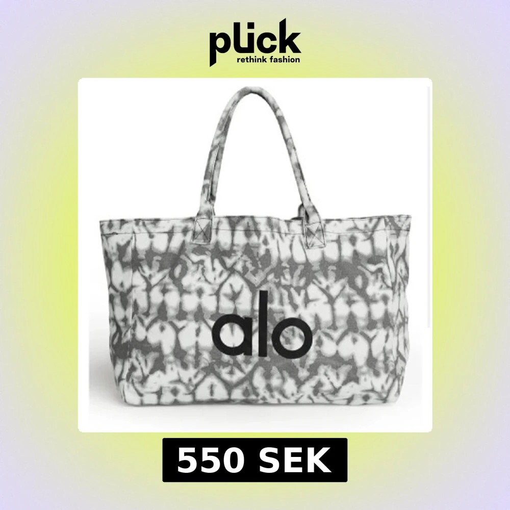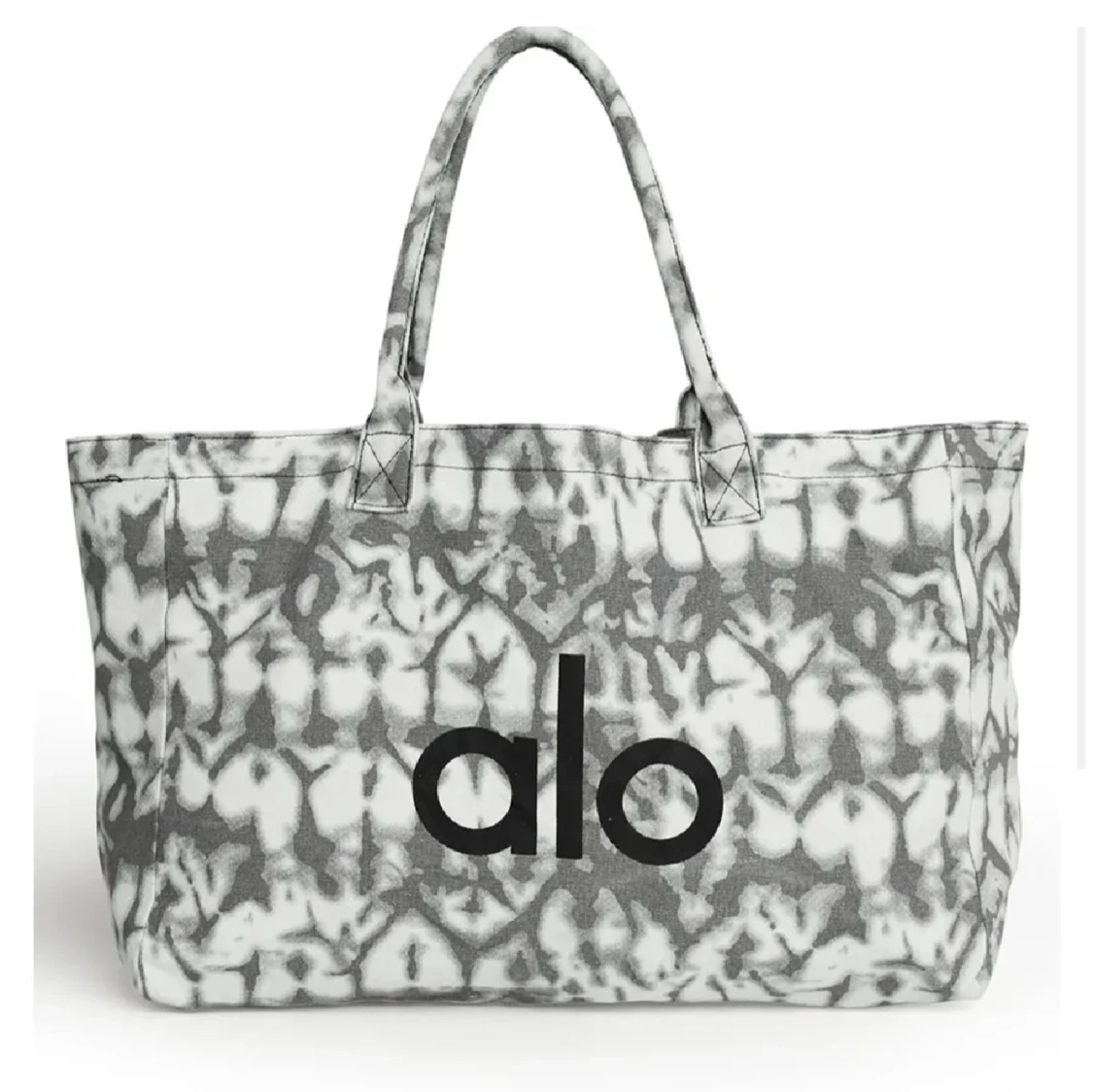 Stor och rymlig shoppingväska från Alo med coolt gråvitt mönster och tydlig logga framtill. Väskan har två rejäla handtag och är tillverkad i mjuk bomull, perfekt för att bära med sig allt man behöver under dagen.