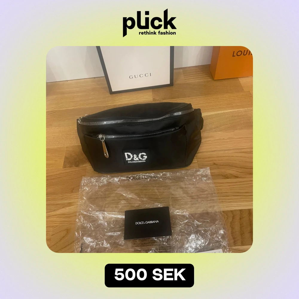 Säljer en snygg svart midjeväska från Dolce & Gabbana. Väskan har en praktisk dragkedja och justerbart band. Perfekt för att hålla dina saker säkra och stiliga på språng. Den är i nytt skick och kommer med originalförpackning.