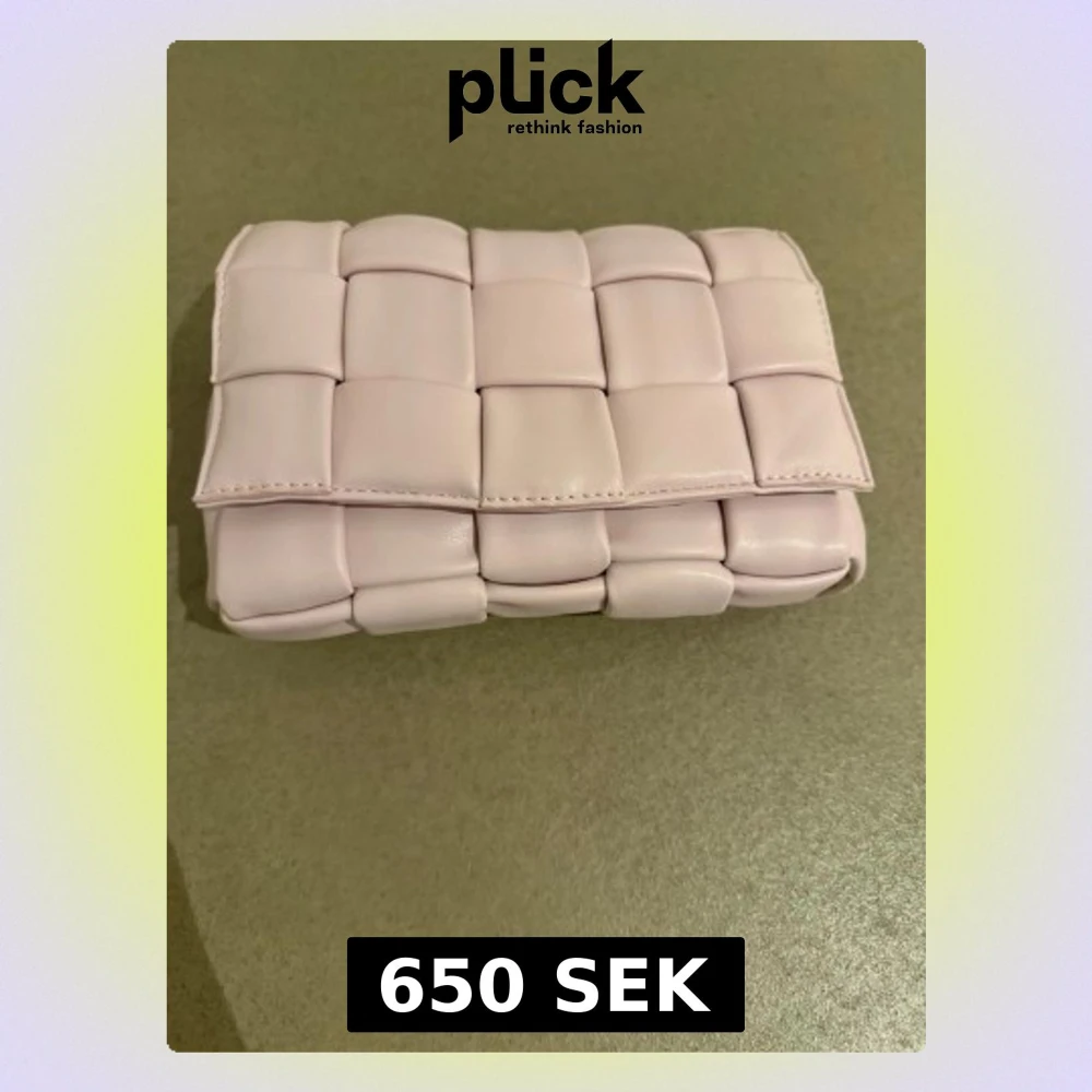 Trendig ljus rosa axelväska med flätad design och justerbart axelband. Väskan har en mjuk, vadderad look och är tillverkad i skinnliknande material. Perfekt för dig som vill ha en stilren och modern accessoar till din outfit.