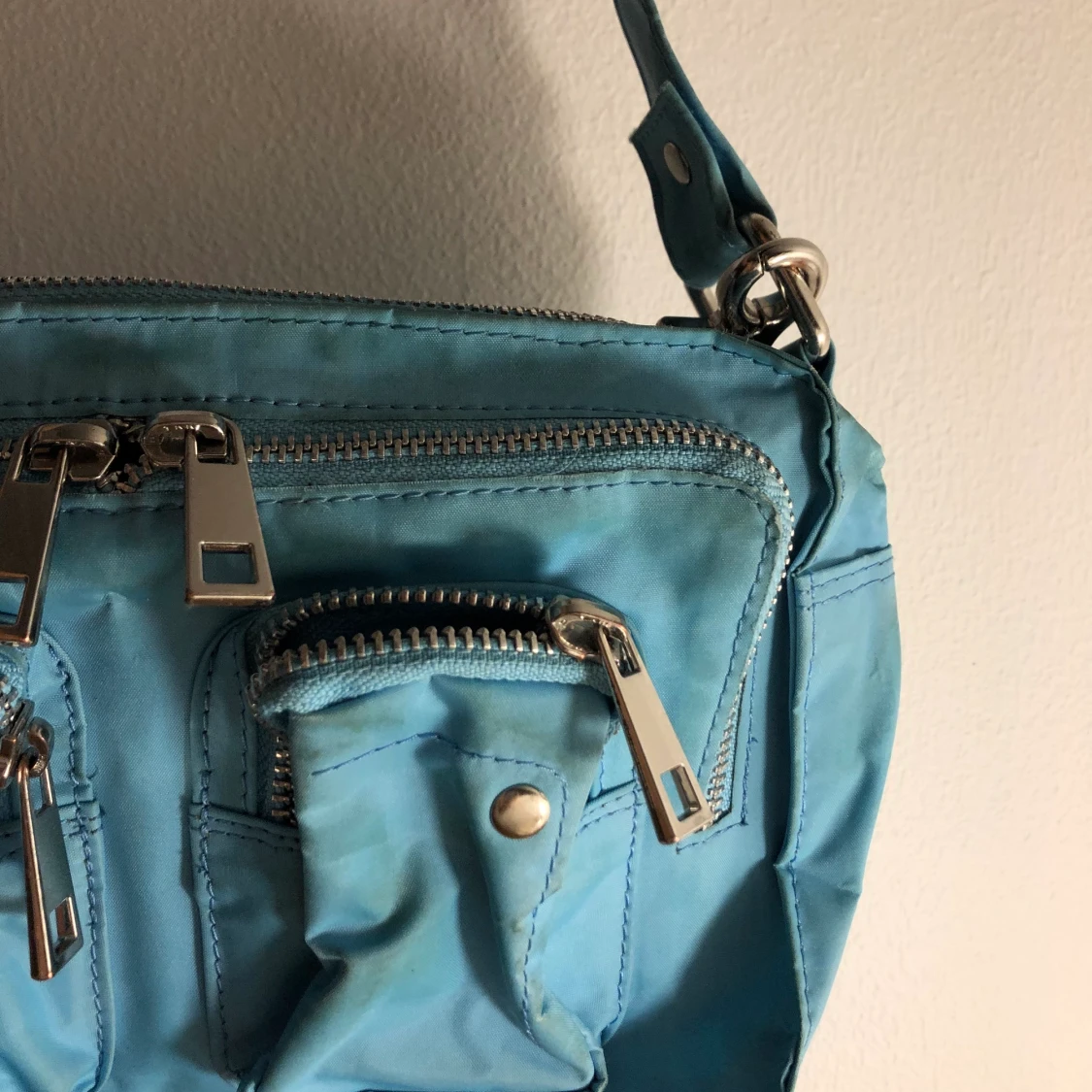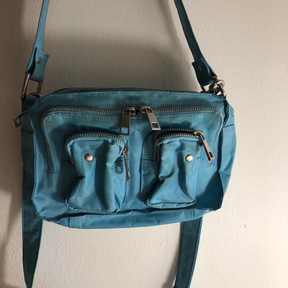 Babyblå väska från Nunoo i fint skick, det syns lite på axelbandets insida att den är lite mörkare och lite på framsidan som man kan se på bilden men annars är den fin! Det ingår även ett längre axelband som man kan justera längd på samt plocka av. Nypris är ca : 900kr och storleken är ca:24 cm x H: 16 cm x D: 10 cm : Kan skicka fler bilder om så önskas. 🌸