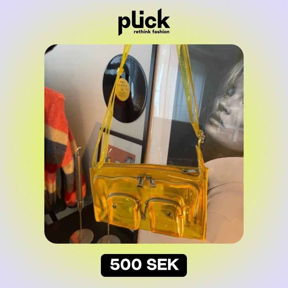 Otrolig väska från danska Nunoo jag älskat men inte får användning för längre. Gul färg och genomskinligt material. Justerbart band och flera fack💛Nypris 1100kr