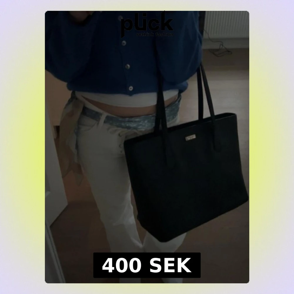 Stilren svart shoppingväska från Kate Spade i slätt syntetmaterial. Väskan har två långa handtag och en metallbricka med logga framtill. Perfekt storlek för att få plats med allt du behöver till skolan eller stan. Får plats med MacBook och näst intill oanvänd!