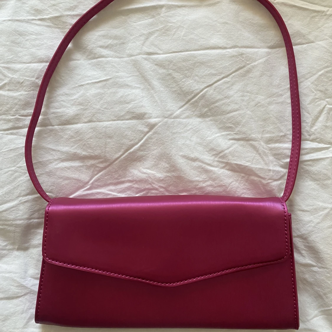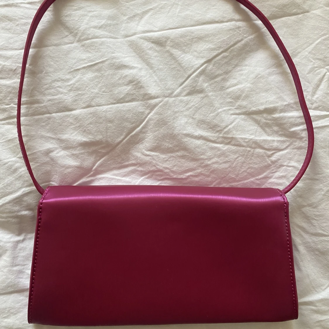 Rosa baguetteväska i hård satin. Bra skick. Använd en gång.
