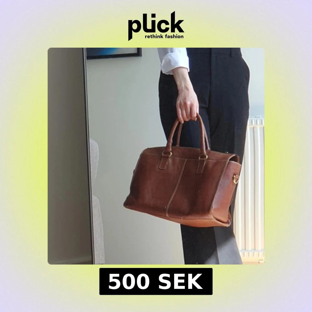 Snygg brun handväska i skinn från Wera Stockholm. Väskan har både handtag och axelrem i matchande läder, guldfärgade metalldetaljer och dragkedja upptill. Perfekt storlek för laptop, böcker eller annat du vill ha med dig. Mycket sparsamt använd. 35 x 22 x 14 cm