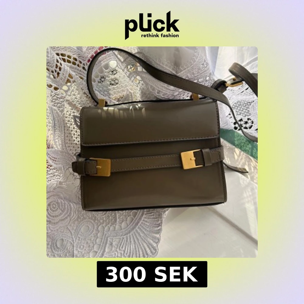 Stilren olivgrön axelväska från H&M i slät skinnimitation med guldfärgade spännen framtill. Väskan har en rektangulär form, justerbar axelrem och minimalistisk design som passar till många outfits.