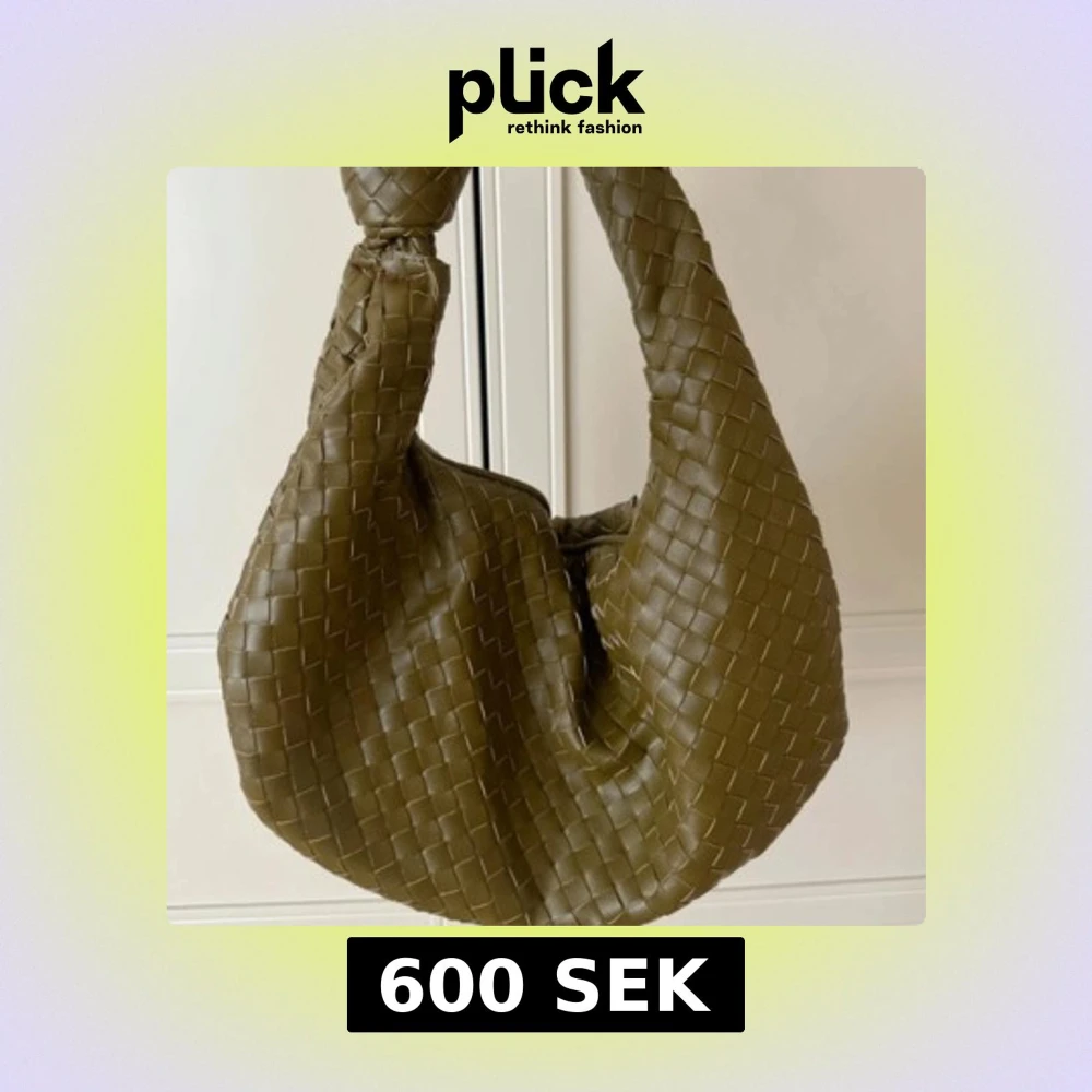 Säljer en olivgrön axelväska i flätat PU-skinn med rundad form och bred axelrem. Väskan har dragkedja upptill och ett innerfack med dragkedja. Perfekt storlek för att få plats med allt du behöver och riktigt snygg att bära över axeln. Använd fåtal gånger 💘 liknar bottega veneta
