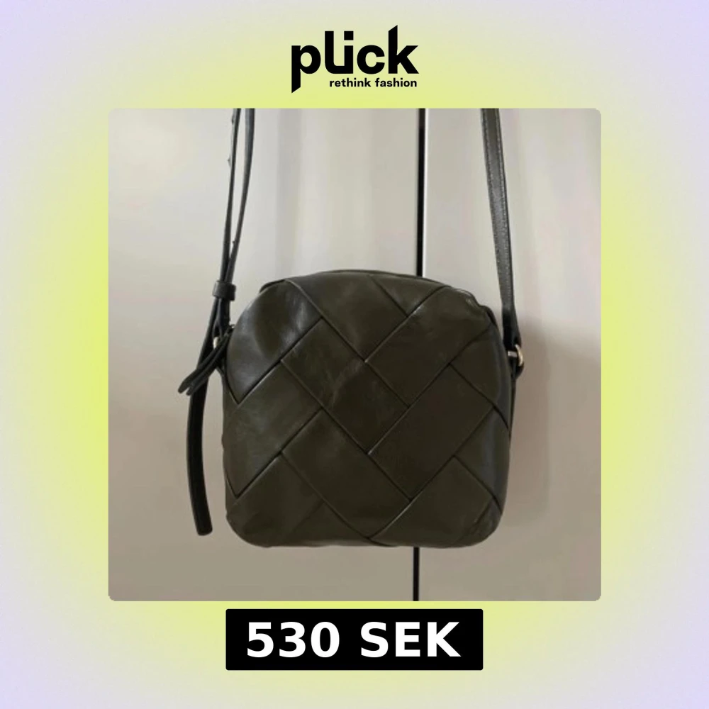 Olivgrön flätad axelväska i skinn