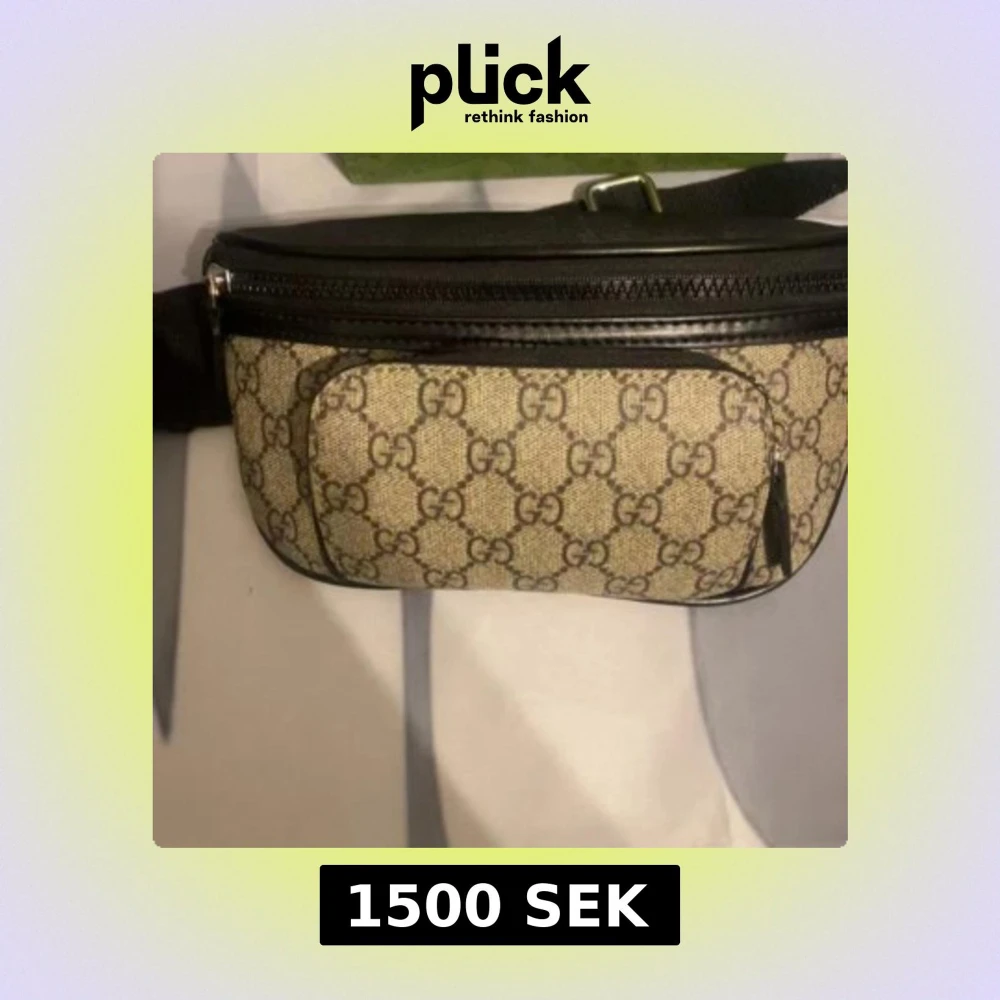 Säljer en beige magväska med klassiskt GG-mönster och svarta detaljer. Väskan har dragkedja upptill och ett extra fack framtill. Perfekt för att bära det viktigaste med stil.
