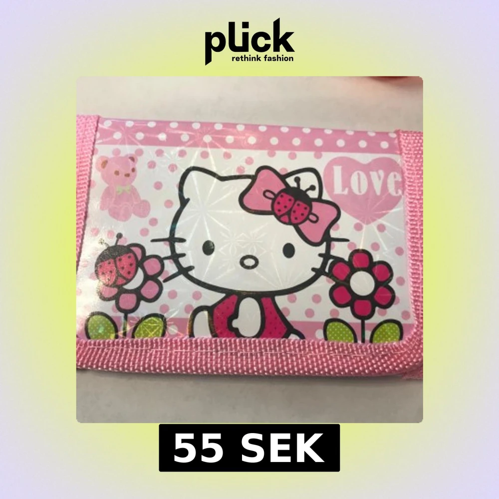 Söt rosa plånbok med Hello Kitty-motiv. Plånboken har ett lekfullt design med prickar och hjärtan, samt bilder av Hello Kitty med olika teman. Perfekt för den som älskar färgglada och charmiga accessoarer. 55kr/st , helt ny