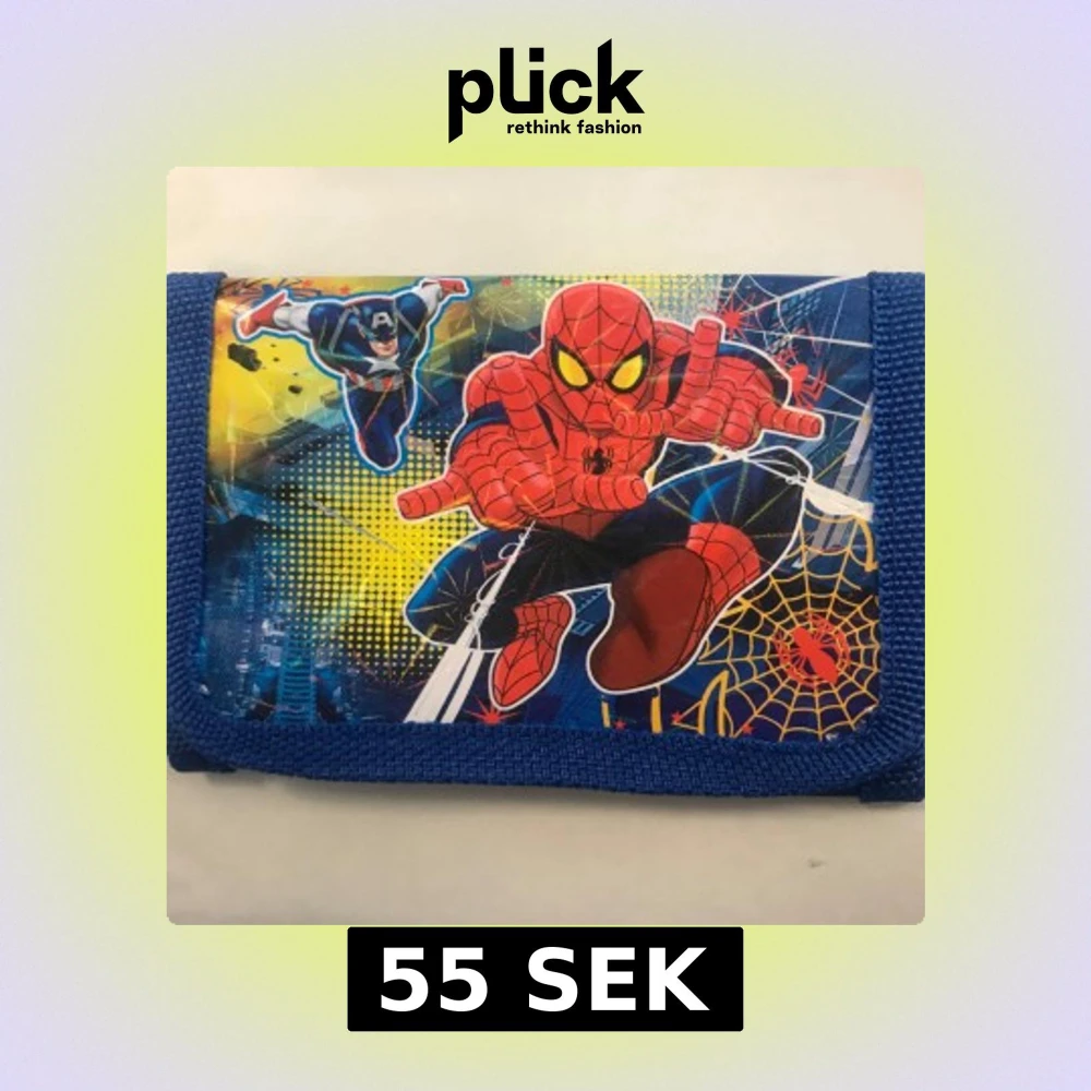 Cool blå plånbok med färgglada Spiderman-tryck och superhjältar på båda sidor. Perfekt för att hålla koll på pengar och kort. Plånboken har en mjuk textilram och stängs med kardborre. Ny