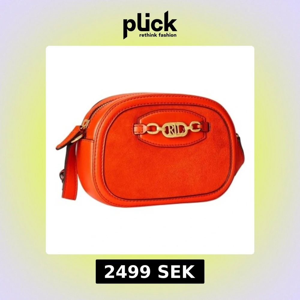 Snygg orange axelväska från Ralph Lauren i mocka med gulddetaljer. Väskan har en justerbar axelrem och en dragkedja upptill. Perfekt för att ge en färgklick till din outfit!