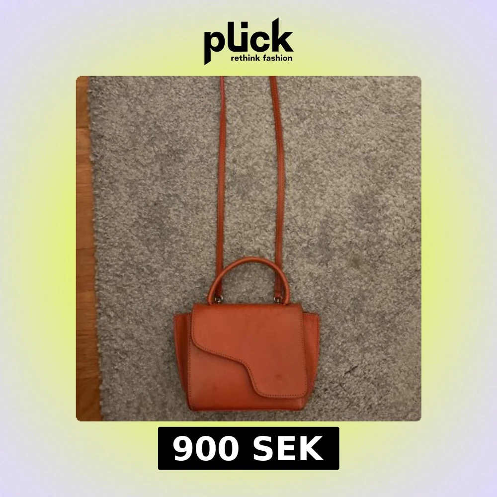 Orange axelväska i skinn med unik form