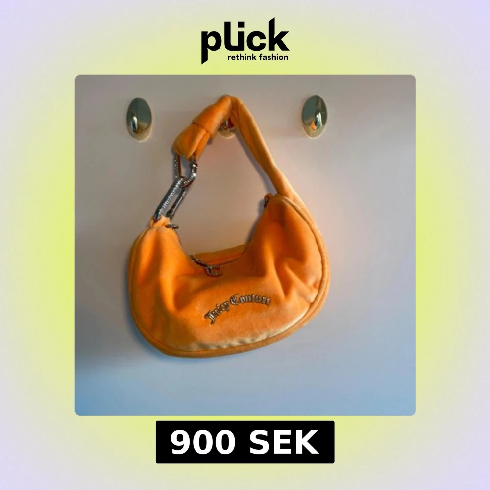 Superfin axelväska från Juicy Couture i mjuk sammet med silvriga metalldetaljer i orange velour 🧡. Med väskan kommer samtliga accessoarer dvs plånbok (se bild 4), och en längre axelrem som båda går att knäppa på eller av!