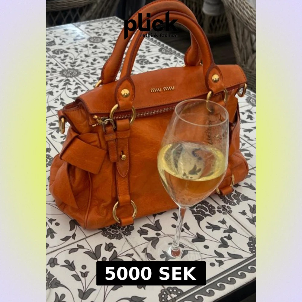 Säljer nu min orangea miumiu bow-bag (äkta) Orangefärgad handväska med dubbla handtag och guldfärgade detaljer. Säljer den för att jag känner att den har gjort sitt och att det är dags för någon annan att älska den 🧡 (köpt på Vestiaire Collective i maj) för mer bilder på väskan kan man bara skriva till mig så löser jag det såfort som möjligt. Är man intresserad men känner att väskan inte är värd pengen, skriv så kommer vi överens om annat