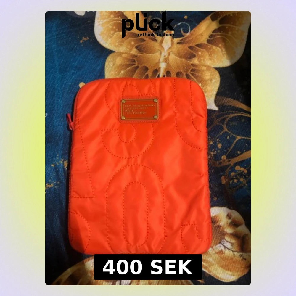 Säljer en snygg orange iPadfodral från Marc by Marc Jacobs med quiltad design och metallplakett framtill. Väskan är gjord i mjuk polyester och har en dragkedja med coolt ringformat zip-tag. Perfekt för att hålla koll på dina essentials.