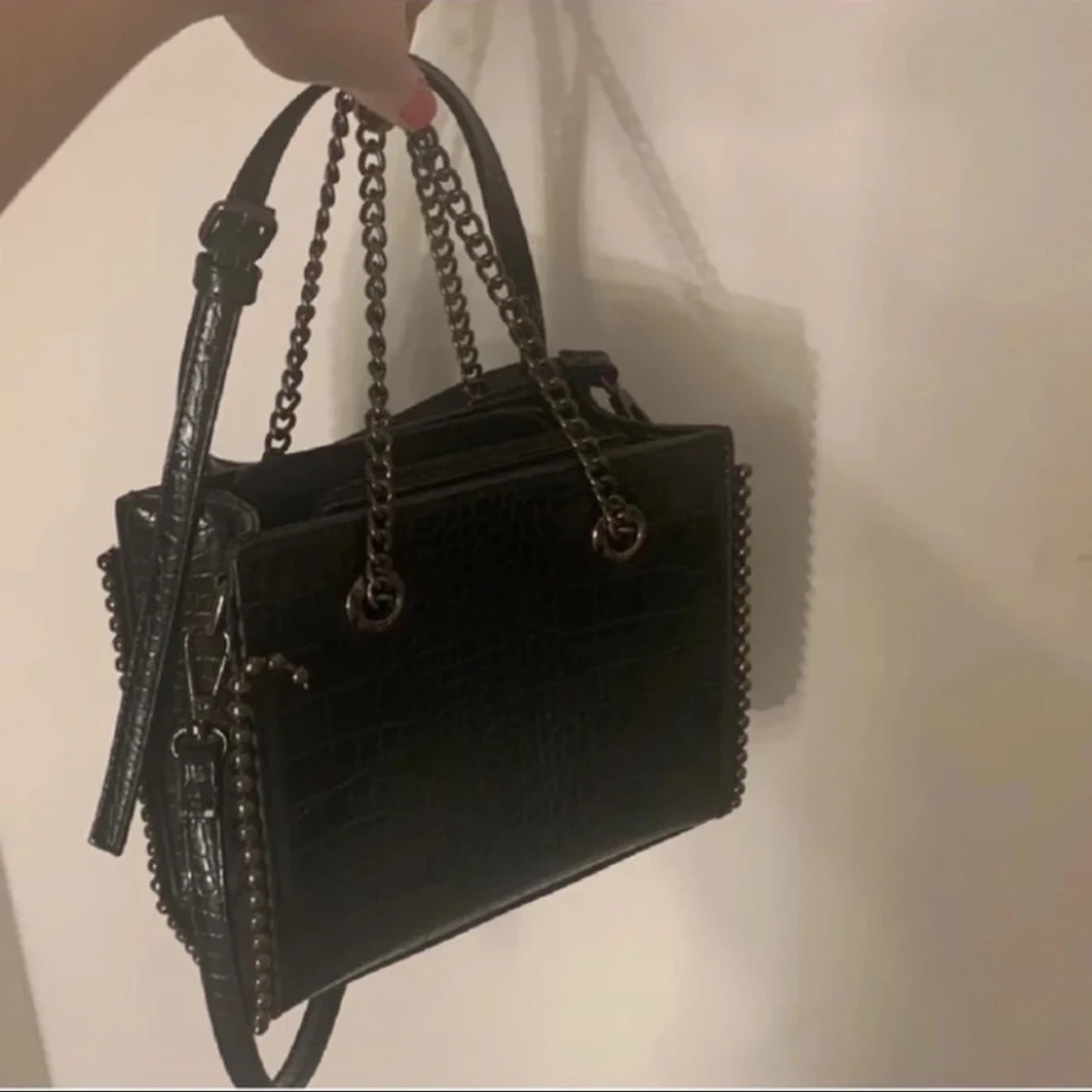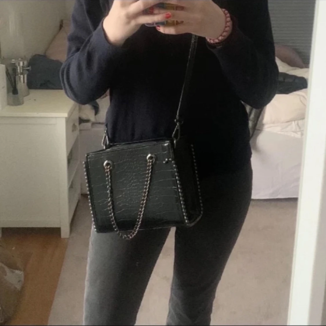 Snygg svart axelväska med kedjedetaljer som är andvänd ett fåtal gånger.