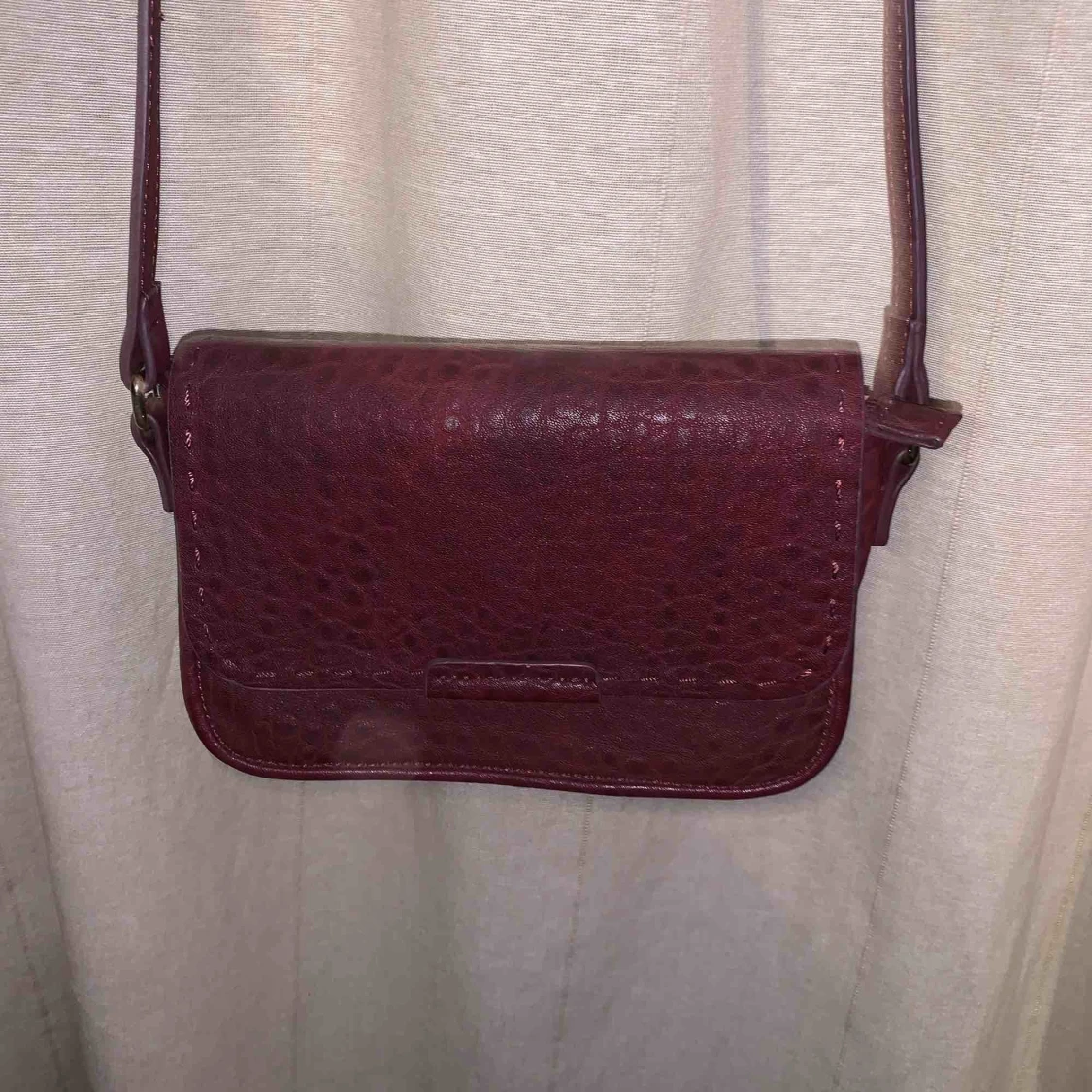 Vinröd väska från Åhlens. Gulddetaljer. Betalas med swish. Kan mötas upp i Halmstad eller skicka mot frakt som betalas av köparen.