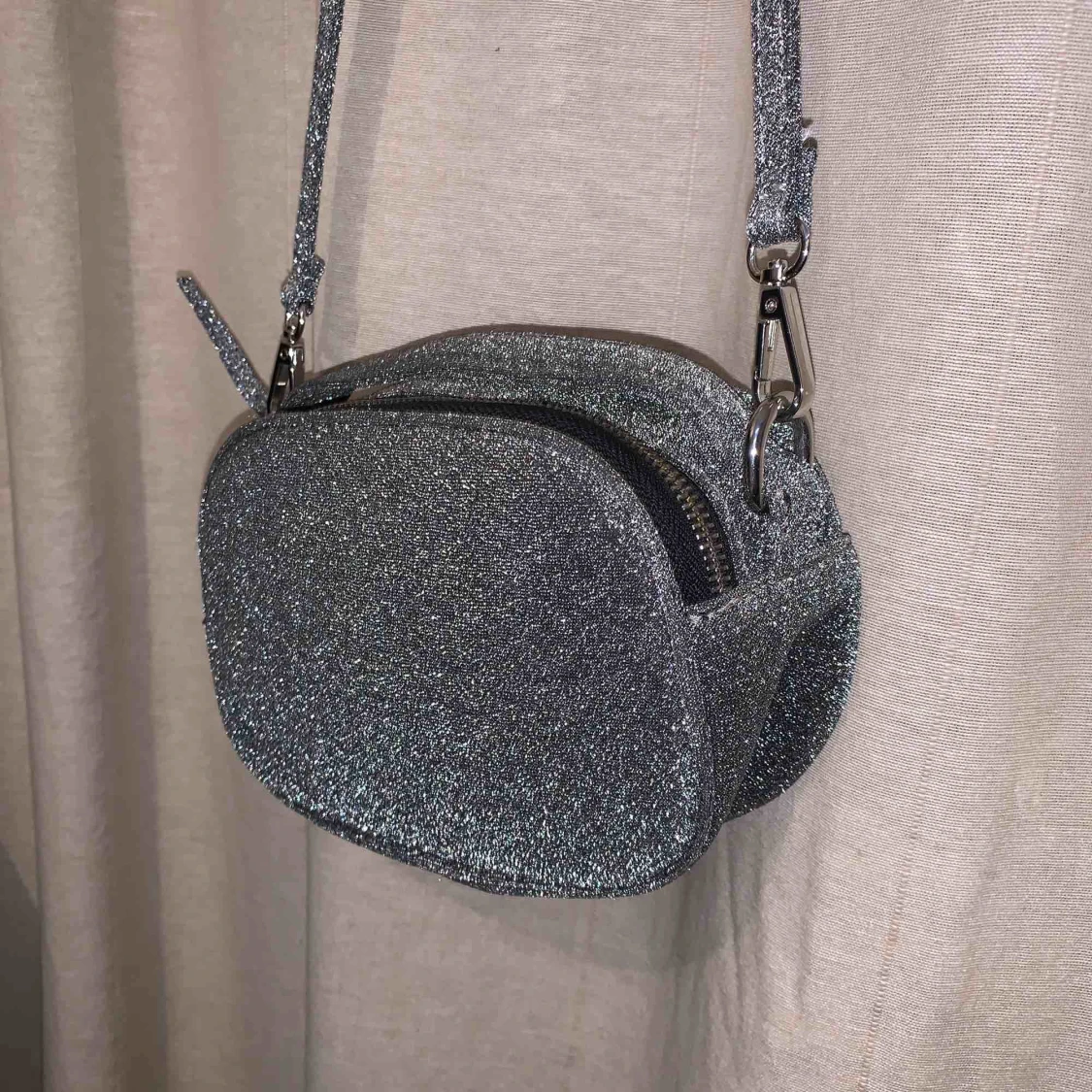 Silvrig/glittrig väska från Pull & Bear som lyfter vilken outfit som helst! Justerbar axelrem. Betalas med swish. Kan mötas upp i Halmstad eller skicka mot frakt som betalas av köparen.