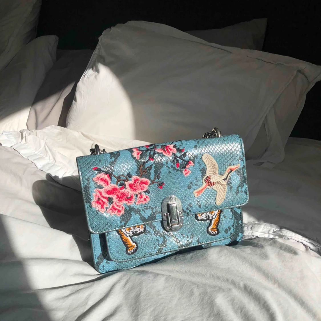 Superfin väska med justerbart band. Kan båda bli en axelväska och crossoverbag. Inköpt på mango, nypris 500kr, i Spanien för ett år sedan. Knappt använd, som ny