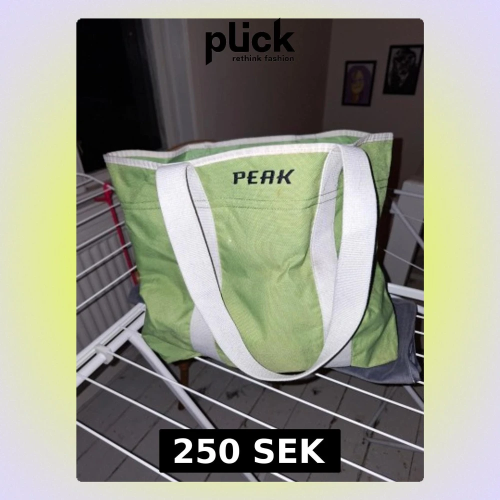 Snygg grön shoppingväska från Peak Performance med vita detaljer och breda handtag. Väskan är rymlig och har en vit insida samt en innerficka. Perfekt för att bära med sig allt man behöver under dagen. Stängs med dragsko. Djur finns i hemmet