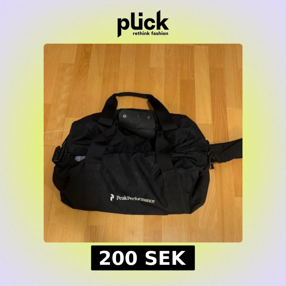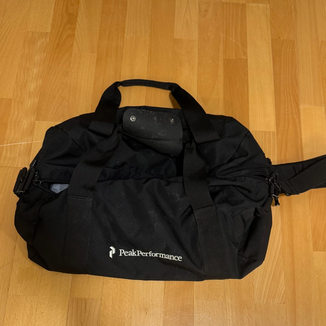 Säljer en svart träningsväska från Peak Performance med praktiska handtag och axelrem. Väskan har dragkedja och logga framtill. Perfekt för gymmet eller sportaktiviteter, rymmer allt du behöver och är enkel att bära med sig.