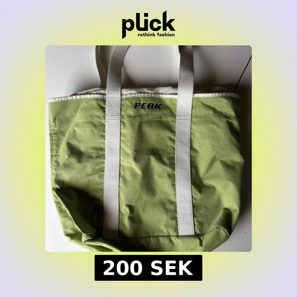 Superfin väska från Peak Performance i härlig grön färg med snygg logga i mörkblått. Aldrig använd av mig.