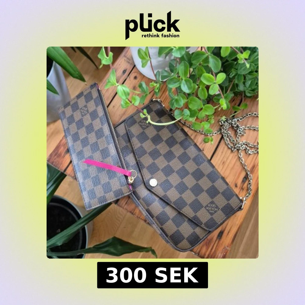 Väska i fint skick, kan bäras med eller utan kedja. Tillhörande plånbok. Använd ett fåtal gånger. 22x13 cm ca.