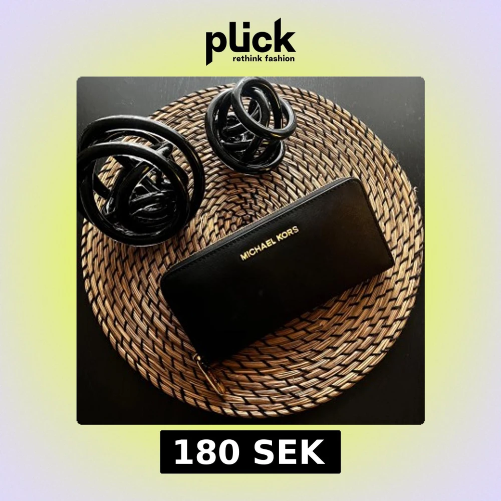 Svart plånbok från Michael kors. Klassisk rektangulär form med logga i guld på framsidan. Den är fin och bra sicket. Perfekt för att hålla koll på kort, cash och småprylar.