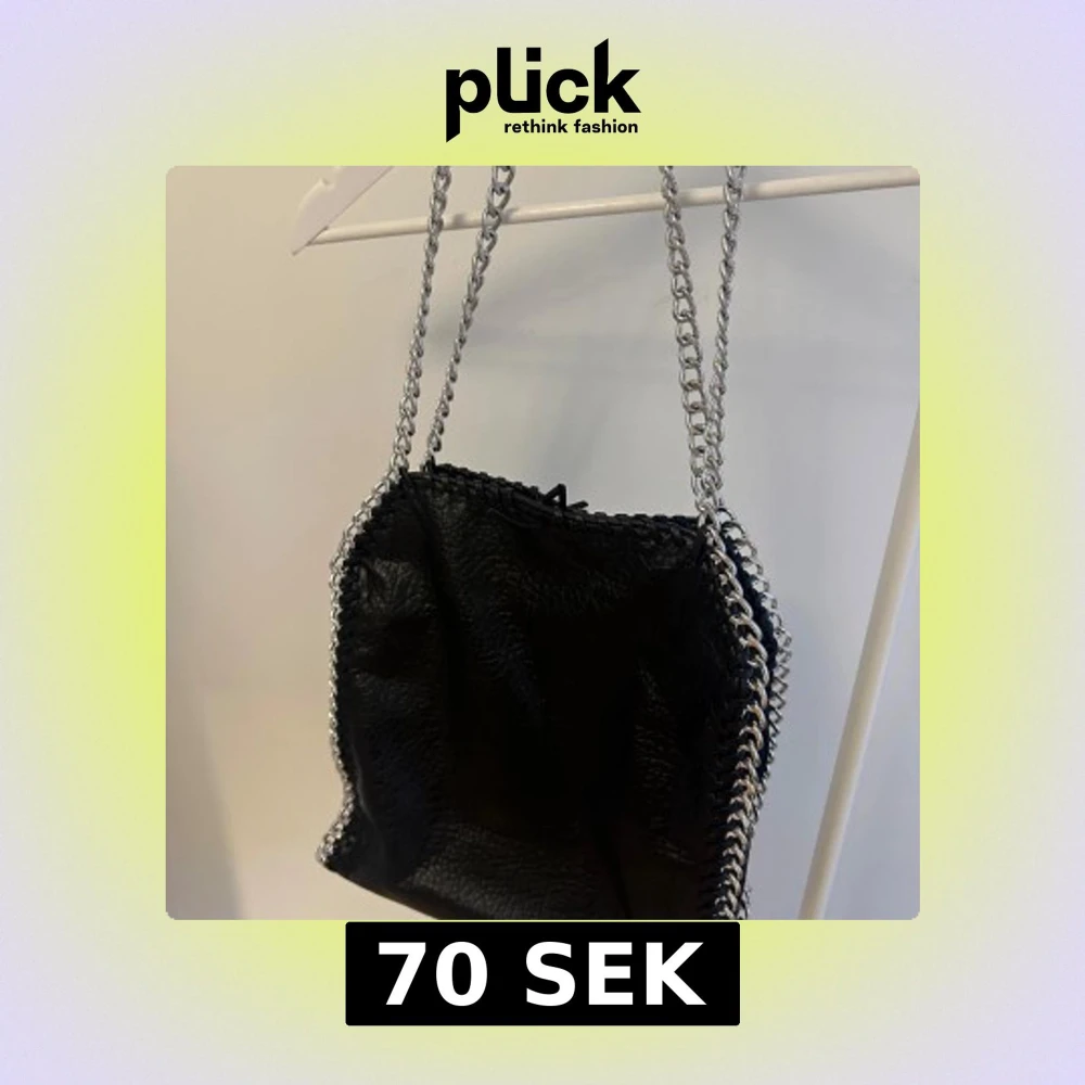 Säljer en svart axelväska med silverfärgade kedjeremmar. Tyvärr har det gått upp lite högst upp på väskan men jag är säker på att det går att lösa med lite nål och tråd! Säljs på grund av att den inte används längre❤️