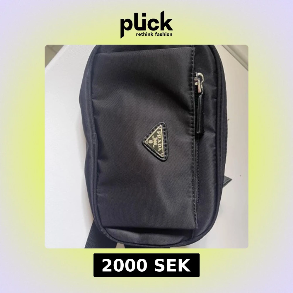 Säljer en stilren svart axelväska från Prada med klassisk trekantig logotyp framtill. Väskan har dragkedja upptill och ett extra fack med dragkedja på framsidan. Perfekt storlek för det viktigaste och enkel att bära med justerbar rem.