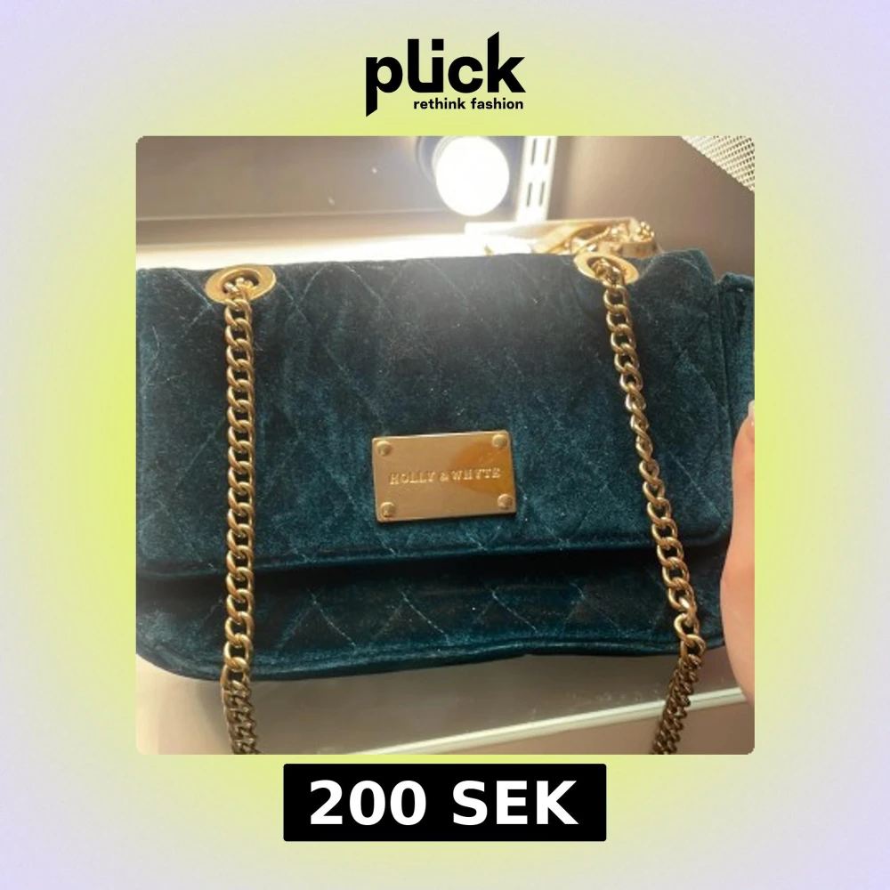 Supersnygg quiltad axelväska i mörkgrön sammet från Holly & White. Väskan har guldfärgad kedja och metallplatta framtill. Perfekt storlek för mobilen och det viktigaste, med både innerfack och dragkedja. Ger en lyxig vibe till din outfit!
