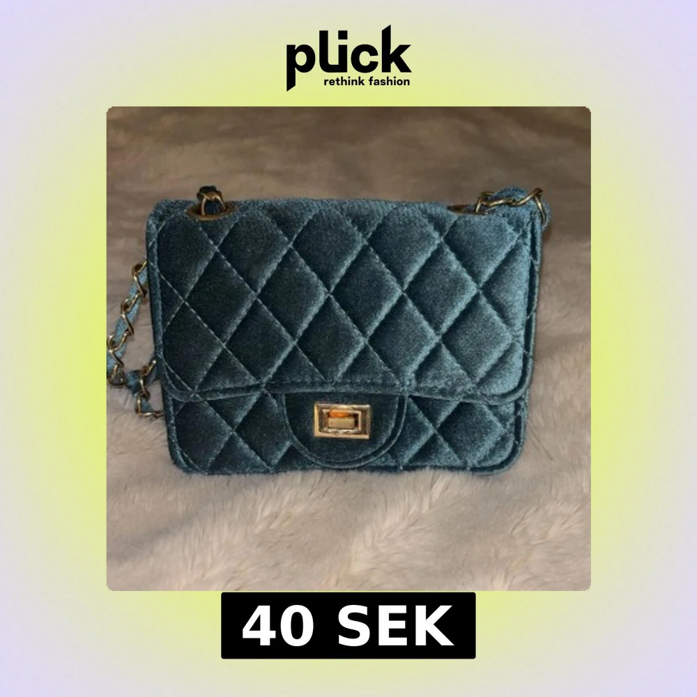 Supersnygg quiltad axelväska i blå sammet med guldfärgad kedja och vridlås. Väskan har ett klassiskt rutmönster och en lyxig känsla med mjuk yta. Från Ur och Penn.
