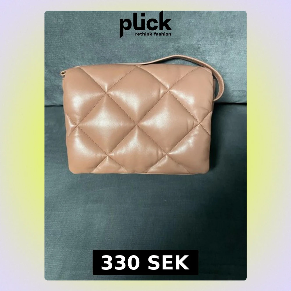 Snygg quiltad axelväska i brun skinnimitation från Stand Studio. Väskan har en mjuk, puffig look med diamantmönster, guldfärgade detaljer och dragkedja på insidan. Perfekt storlek för att få plats med allt du behöver och har en stilren design.