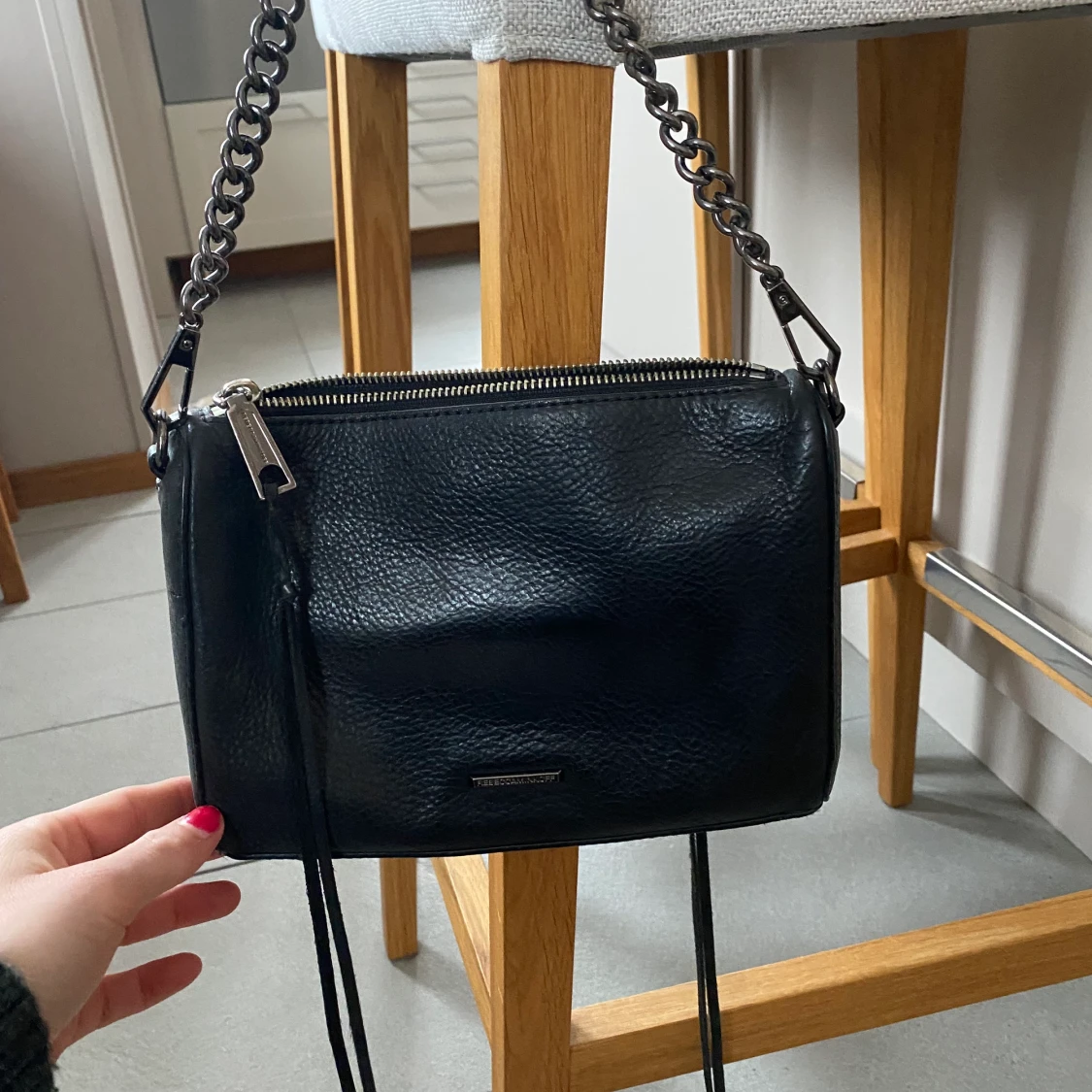 Superfin svart läderväska från Rebecca minkoff med mörkt silvriga detaljer. Köpare står för frakt