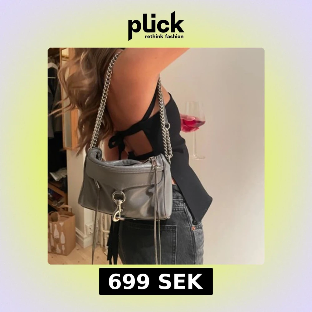 Så fin grå axelväska i skinn från Rebecca minkoff, cool kedjerem och dragkedja. Väskan har en stilren design med en dekorativ metallspänne framtill. Perfekt för att ge din outfit en edgy touch.